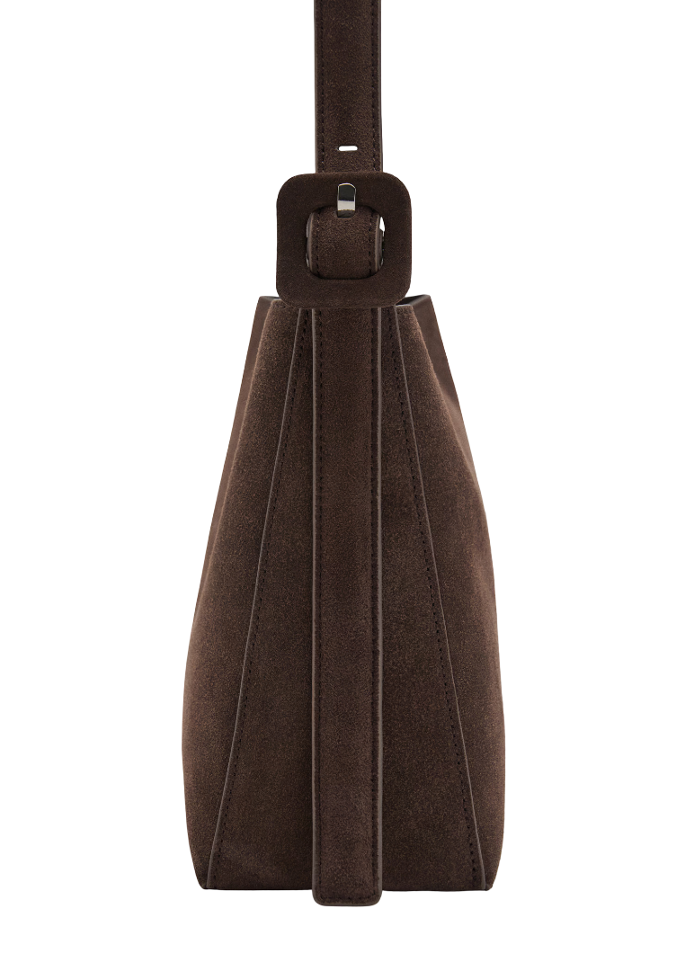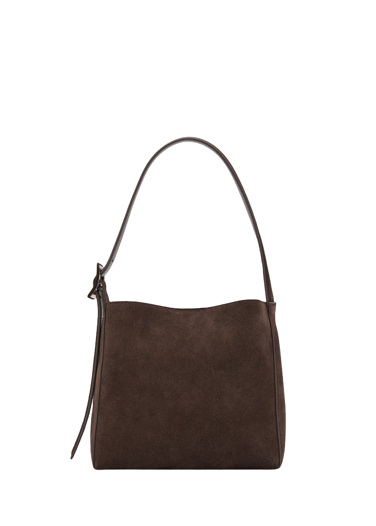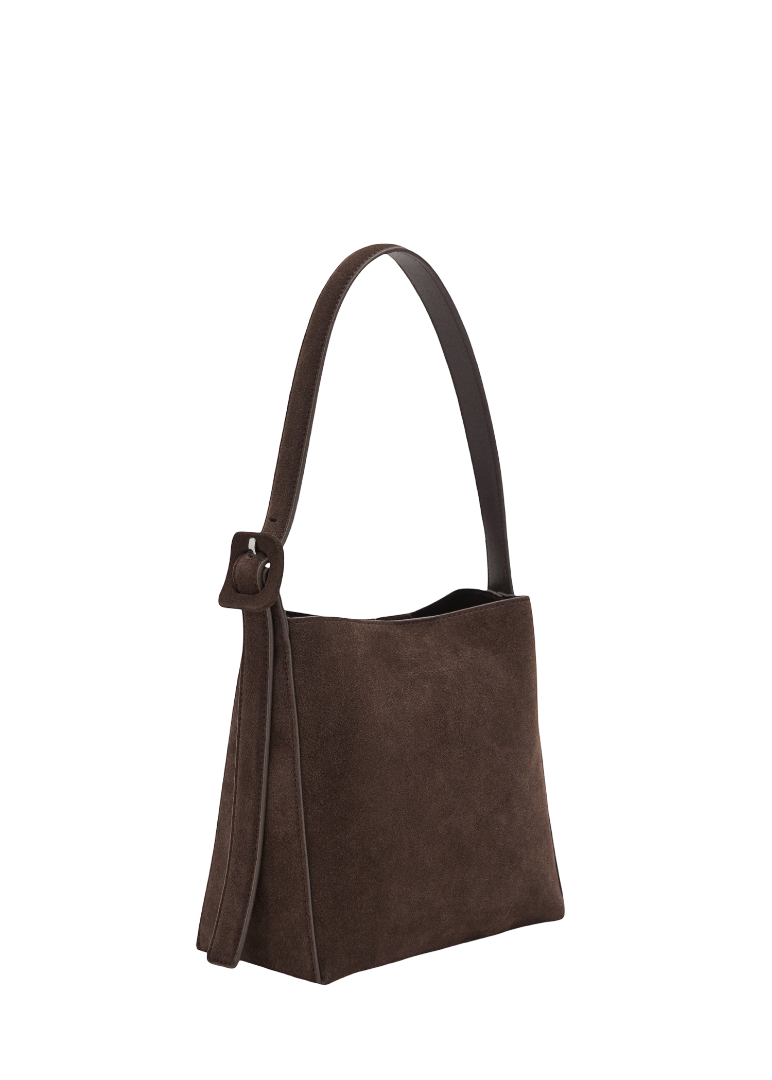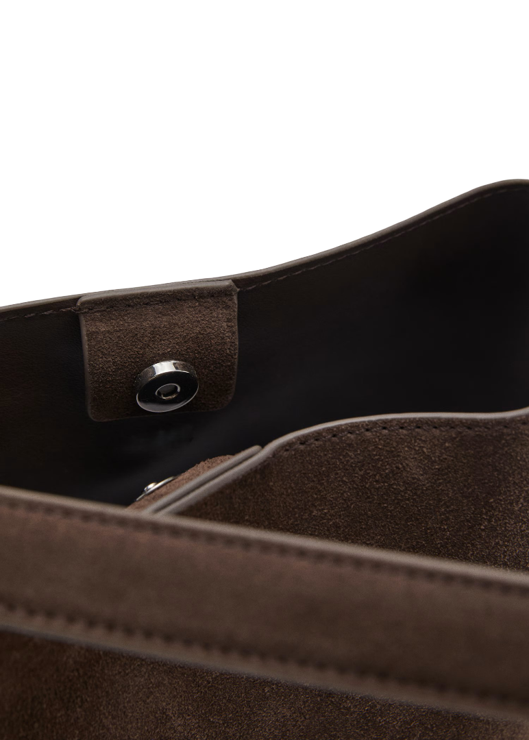 Turn heads with this Suede Shopper Bag in coffee brown, designed to combine style and practicality for everyday use. Made from soft suede leather, this medium-sized shopper features a shoulder strap and a handle with an adjustable buckle for versatile carrying options. The magnetic button closure keeps your essentials secure, while the inner lining ensures organized storage. The coffee brown color is an online exclusive, making this shopper a standout choice for casual outings or daily errands.
